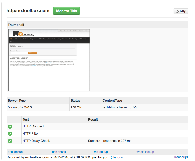 If you’re a fan of our HTTP/S lookup tools, you may have noticed that we added a new feature: Screenshots. Now, when you run an HTTP or HTTPS lookup on a domain you will see a screenshot of what the domain looked like when we ran the test. If there is an error, you now have more information on what error may have occurred.